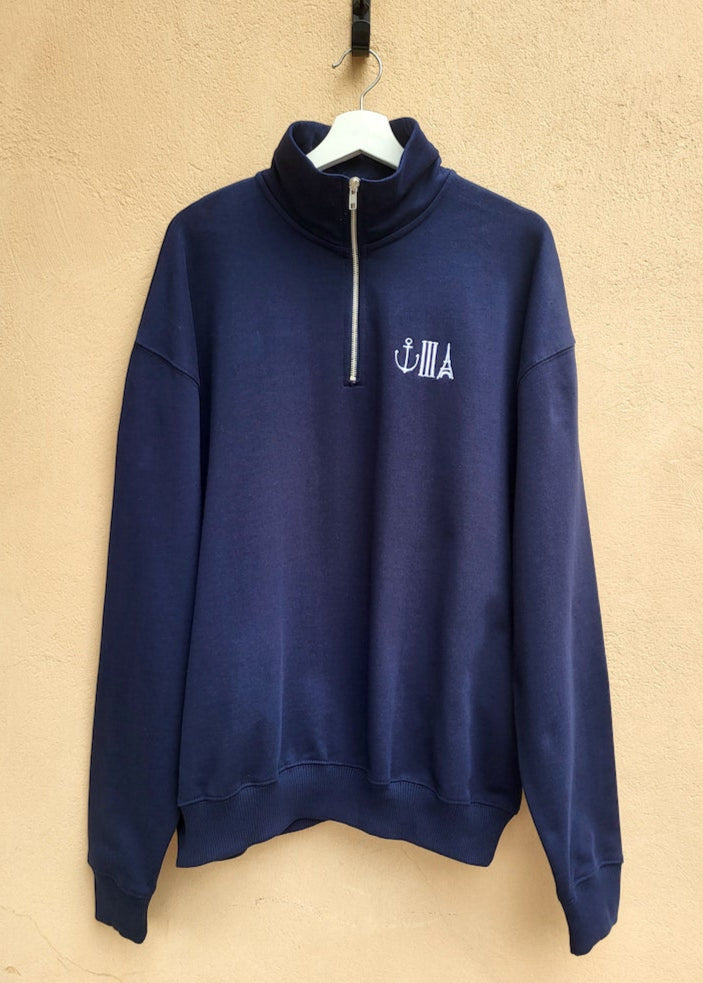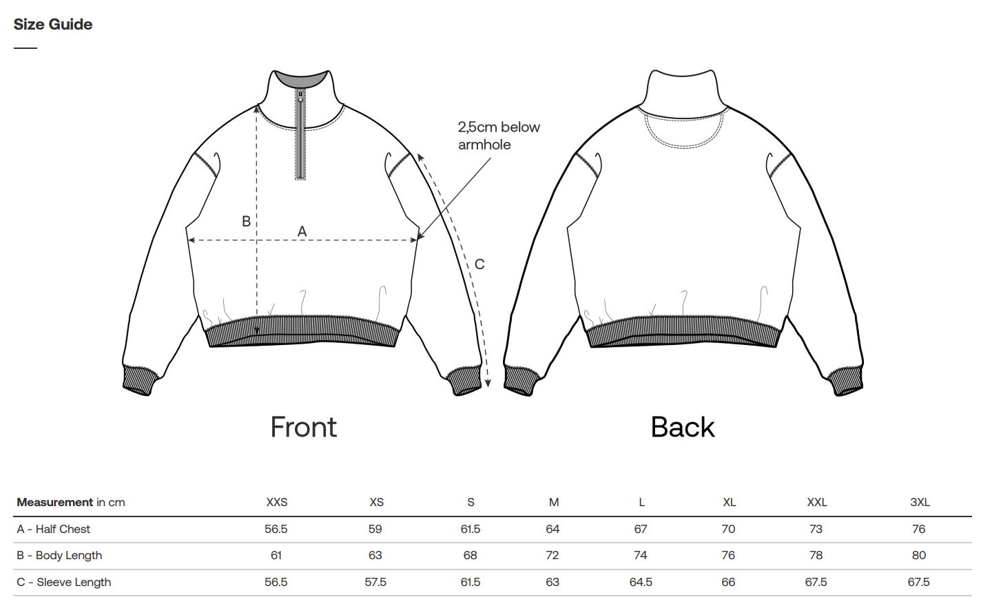 Malli: Oversized -istuvuus, resorit hihoissa ja helmassa, pudotetut hihat, korkea kaulus vetoketjulla (half-zip), unisex-malli
