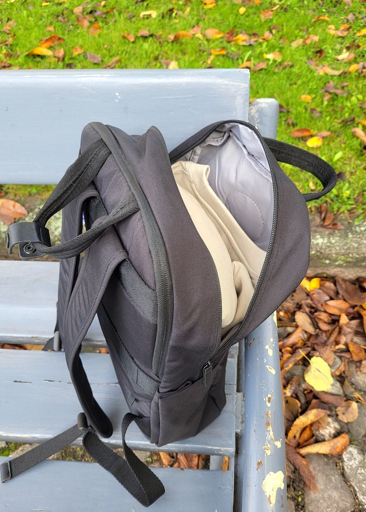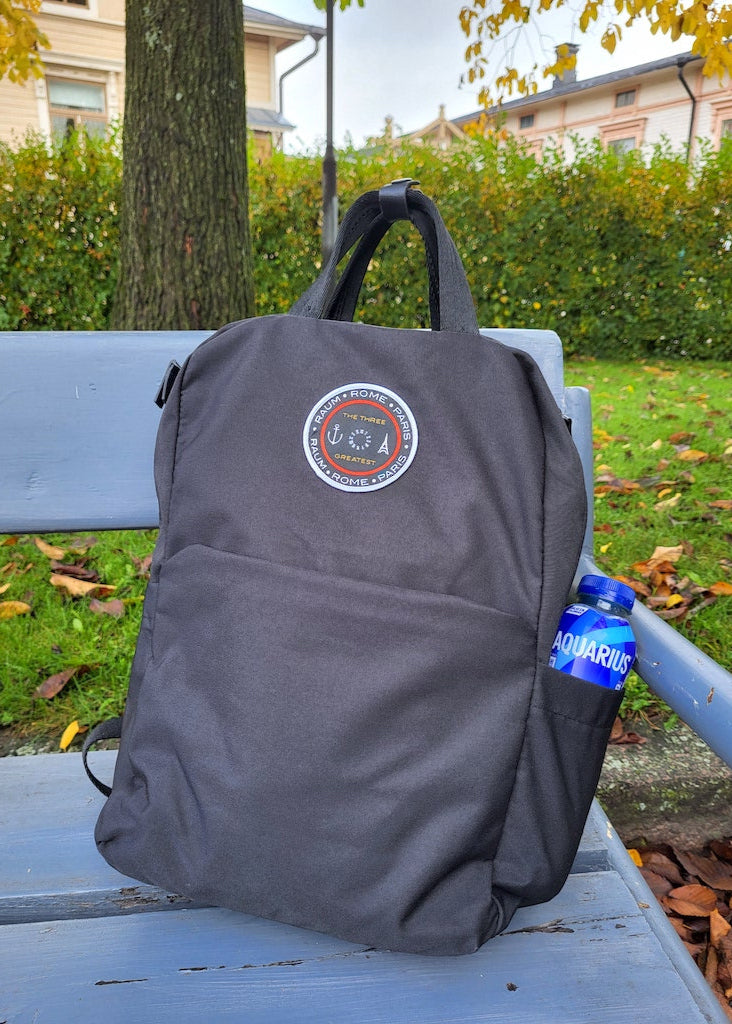 Matkustamista varten selän alaosassa on pieni tasku avaimille, maksukorteille ja passille. Reppuun pakkaat esimerkiksi viikonloppuun tarvittavat vaatteet ja tavarat.